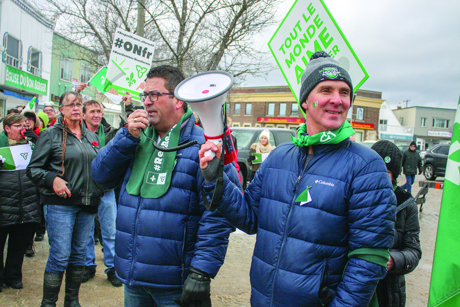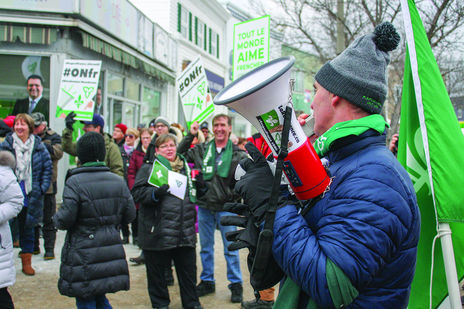 Cette unification d’esprit de la communauté pour la défense des droits d’un peuple fondateur fut évidente dans l’ampleur des cris de la foule « nous sommes – nous seront » « notre drapeau – notre langue » Des plus âgés ou plus jeunes, tous unissaient leur voix à ce cri de guerre tandis que les bannières du drapeau franco-ontarien se baladaient dans l’air hivernal.